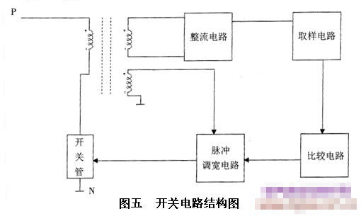 直流高壓P端加到高頻脈沖變壓器初級(jí)端,開關(guān)調(diào)整管串接脈沖變壓器另一個(gè)初級(jí)端后,再接到直流高壓N端。開關(guān)管周期性地導(dǎo)通、截止,使初級(jí)直流電壓換成矩形波。由脈沖變壓器耦合到次級(jí),再經(jīng)整流濾波后,獲得相應(yīng)的直流輸出電壓。它又對(duì)輸出電壓取樣比較,去控制脈沖調(diào)寬電路,以改變脈沖寬度的方式,使輸出電壓穩(wěn)定。