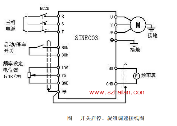圖一 開關(guān)啟停、旋紐調(diào)速接線圖