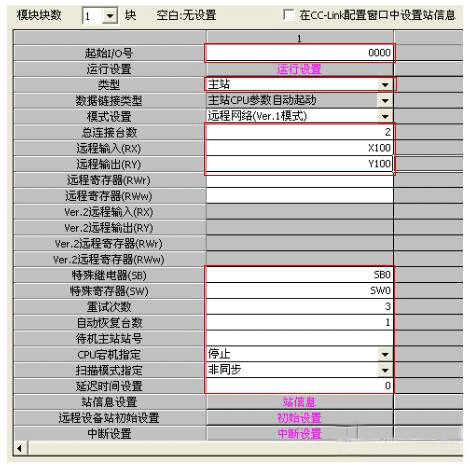(1)主站的設(shè)置