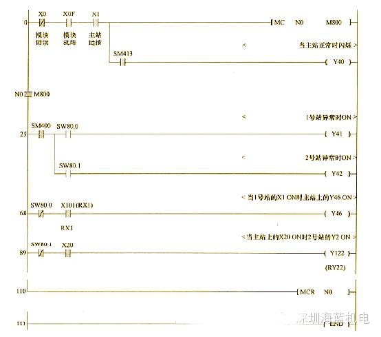 (2)順控程序的示例程序如下所示: