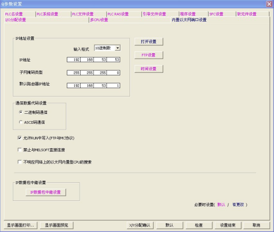 (5)設(shè)定內(nèi)置以太網(wǎng)參數(shù)