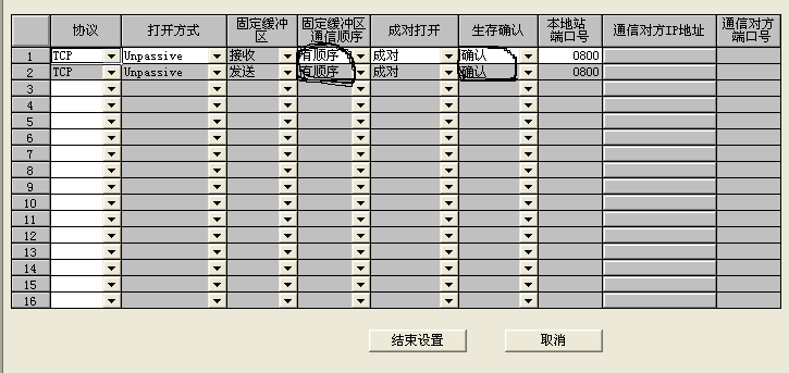 此處要在注意協(xié)議的選擇,如果不能和地址中的最后一項相對應(yīng)(0代表UDP通訊,1代表TCP通訊)則會導(dǎo)致通訊失敗。