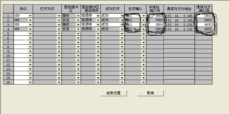上圖是選擇TCP通訊協(xié)議時的情況,圖中鉛筆圈定的兩個地方要注意,第一處一定要選“有順序”否則會引起通訊失敗,第二處一定要選 “確認”,這樣才能與上一圖中的設(shè)置相對應(yīng),否則會導(dǎo)致通訊恢復(fù)需要很長時間。