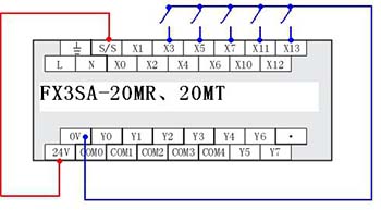 FX3SA 沒(méi)有 COM 端子,和 FX1S 在輸入接線處有點(diǎn)區(qū)別: