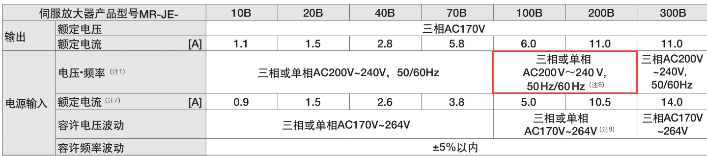 ②只有三菱伺服電機(jī)MR-JE系列有這個說明,J2S,J3,J4系列大于750W都需要三相220V。