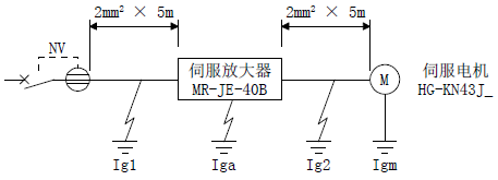 Ig2:從三菱伺服放大器輸出端子至伺服電機(jī)為止的電路的漏電流(表a)
