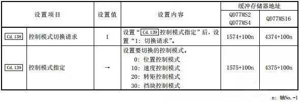 在QD77MS中,默認是位置模式,若需要使用其他模式,則首先需要在Cd.139參數中設置需要的控制模式,然后將Cd.138設置為1實現控制模式的切換。
