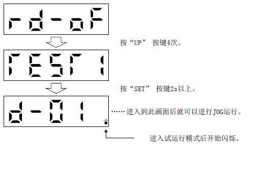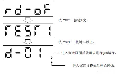 ◎JE-A進(jìn)入測(cè)試運(yùn)行模式的方法(在伺服本體上操作):