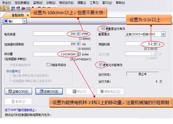 設(shè)置完成后,點(diǎn)擊“正轉(zhuǎn)”,使電機(jī)運(yùn)行。