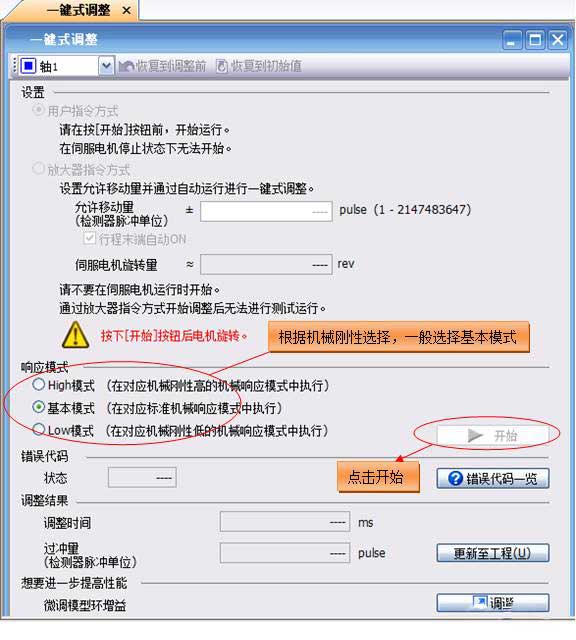 若進(jìn)行一鍵式調(diào)整之后三菱伺服放大器仍有振動(dòng)、異響等情況,可以在一鍵式調(diào)整結(jié)果的基礎(chǔ)上進(jìn)一步地手動(dòng)調(diào)整。