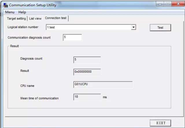 2.使用三菱PLC仿真軟件GX Work2,筆者在測試時(shí)已經(jīng)打開了仿真軟件,通過mx的測試按鈕測試連接成功,此時(shí)使用的邏輯站號為1,后面用C#調(diào)用控件dotUtlType屬性logic Number也要設(shè)置為1;