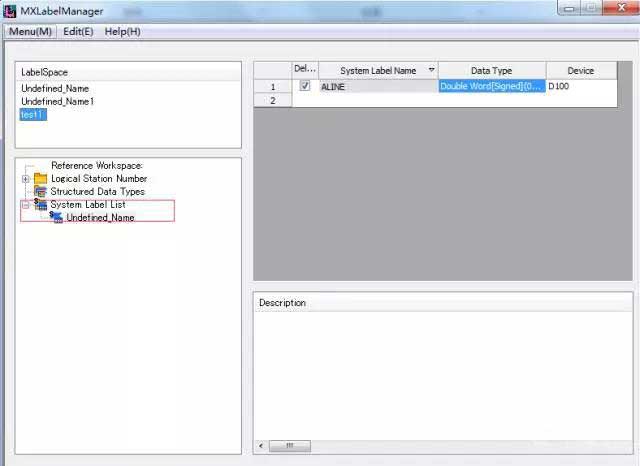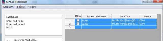 下面說明32位標(biāo)簽數(shù)據(jù)的設(shè)置,筆者將設(shè)置標(biāo)簽為”ALINE”表示D100-D101的雙字?jǐn)?shù)據(jù)。